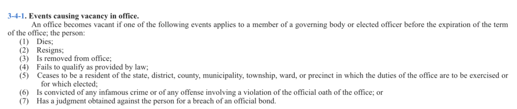 - Chapter 3-4 lists the exclusive events that cause a vacancy (death, resignation, removal from office, failure to qualify, loss of residency, felony conviction, incompatible office, etc.). Bylaws cannot add new events to that list, such as “failure to pay the special maintenance fee” or “not in good standing per our definition.”